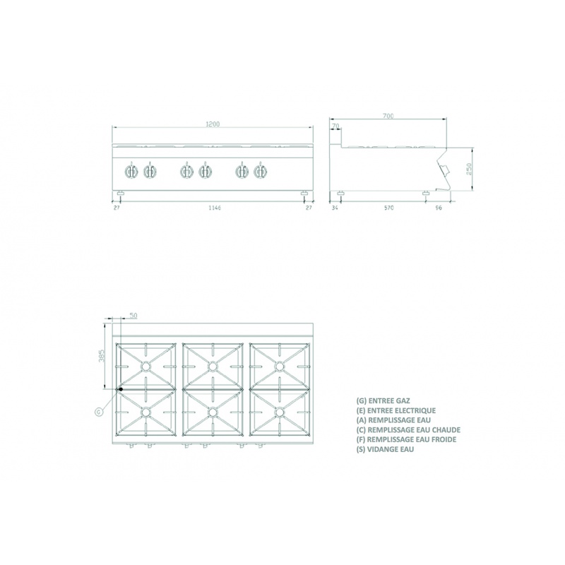 Aragaz profesional pe gaz Giorik ECG760T LineaBase 700, cu 6 arzatoare