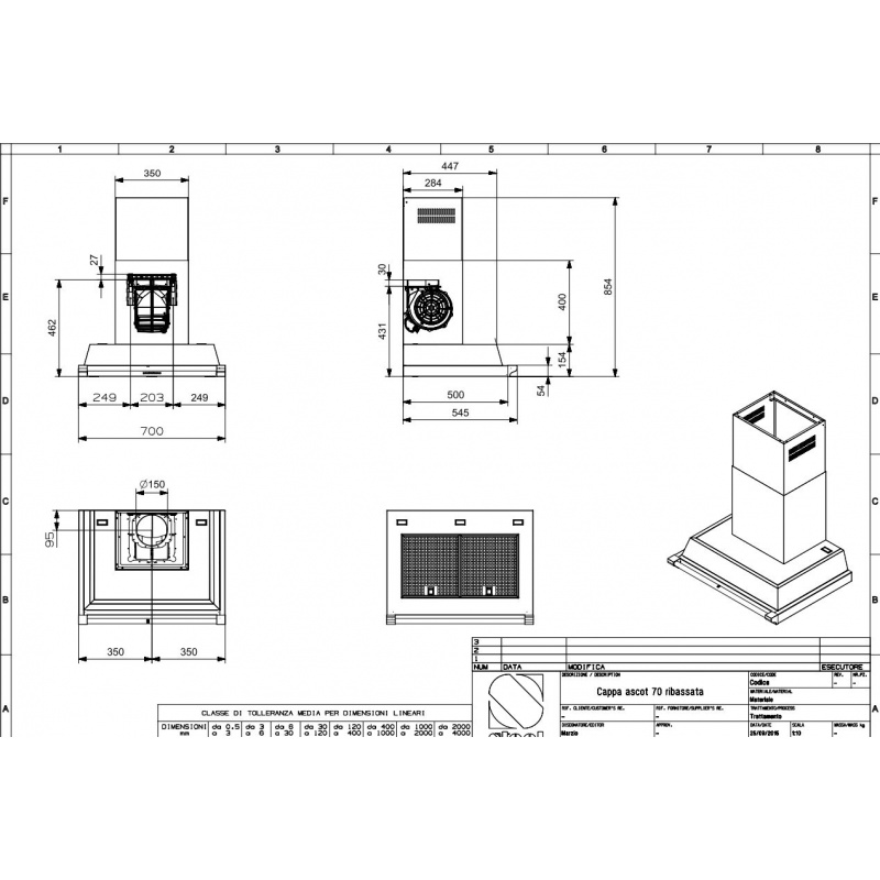 Hota decorativa STEEL Ascot 70, 70 cm, 1 motor, 4 viteze, 900 m3/h, panou control soft touch, negru antracit
