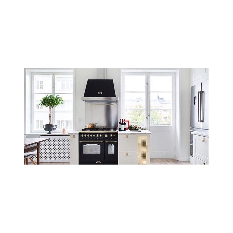 Set Aragaz Lofra Dolcevita RNMD96MFTE/CI, 90x60cm, gaz, 5 arzatoare, cuptor dublu + Splash Back 90 + Hota Dolcevita 90, negru