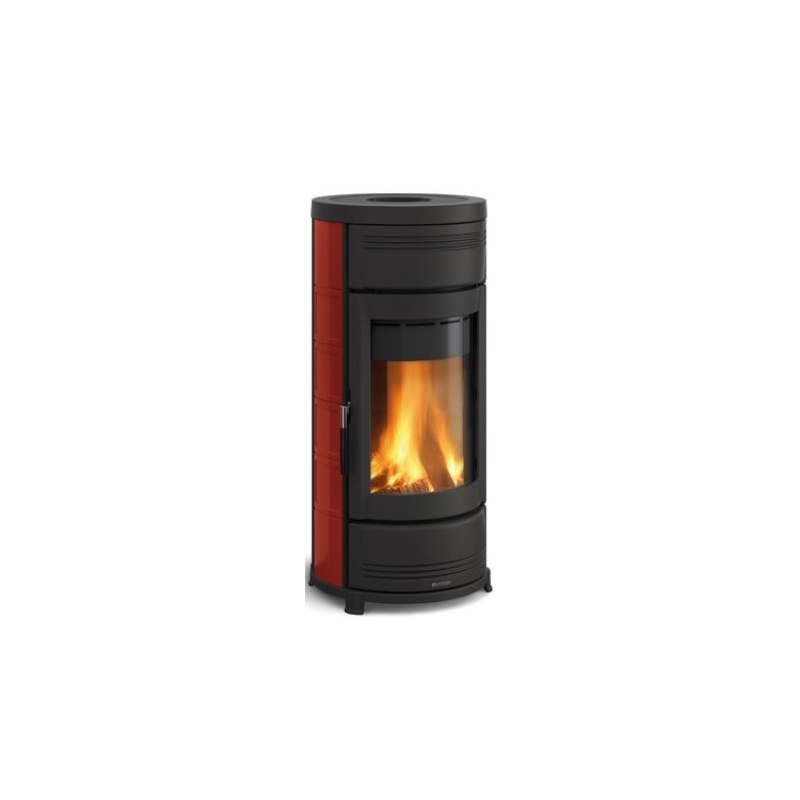 Parament exterior din majolica sau din piatra naturala • Ușa de foc curbata din fonta • Fata interioara a focarului din fonta si nordiker™ cu postcombustie • Vatra cu flacara verticala • Baza si blat din fonta emailata