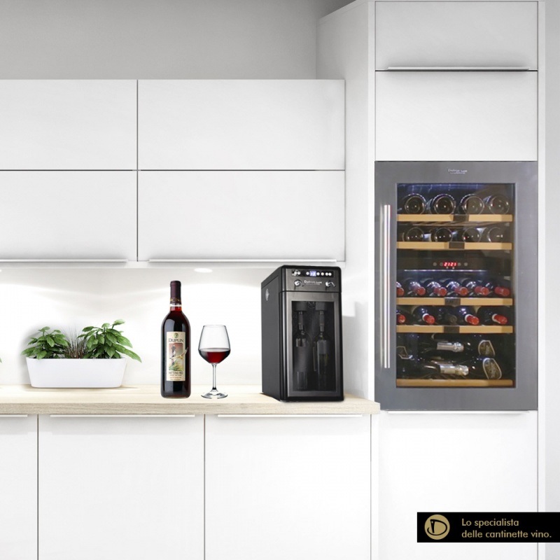 Lumina elegantă Led consumă mai puțin și nu emite căldură, sistemul antivibrație are un sistem care neutralizează micro vibrațiile de zgomot nociv pentru vin, ușă de sticlă cu filtru de protecție UV, vinurile rămân la adăpostul luminii.